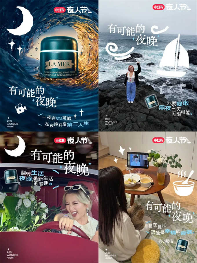 小紅書量體裁衣,尋找品牌與夜晚情緒之間的微妙共振,吸引一眾知名品牌絲滑融入用戶的夜間場景,收獲夜間營銷的1001種可能。