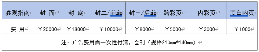 其他廣告費用:廣場大牌子:10000元/個(3*6m);手提袋:30000元/1萬個;門票背面廣告:20000元/4萬張;技術講座:10000元/每場·45分鐘(含場地及燈光音響、投影儀、講臺座椅、白板、礦泉水等)。