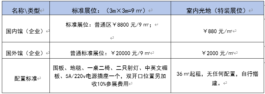 1.展位收費標準