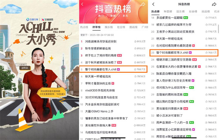 這樣的組合拳之下, #整個(gè)時(shí)尚圈都在等入chill ,霸榜種草榜top 5,熱點(diǎn)總榜top 23,持續(xù)在榜超過3天.