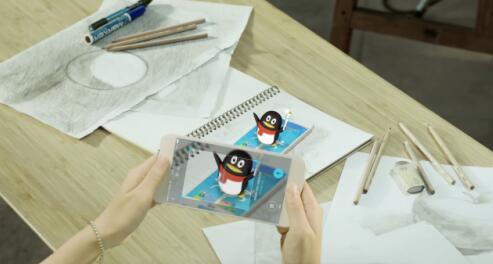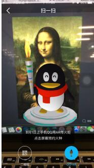 掃描蒙娜麗莎畫像后,就會觸發(fā)出現(xiàn)AR動畫,出現(xiàn)一只QQ企鵝。這也是騰訊QQ的一次AR預(yù)熱互動。