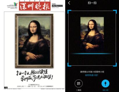 早在QQ火炬大片之前,騰訊QQ在7月28日,于深圳晚報頭版刊出整幅蒙娜麗莎畫像,提示用QQ“掃一掃”,讀懂蒙娜麗莎迷之微笑。