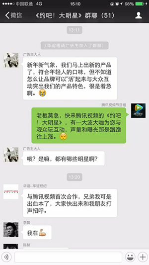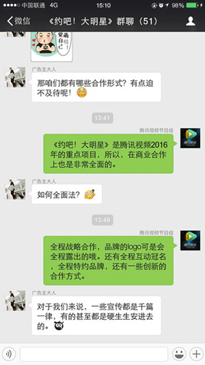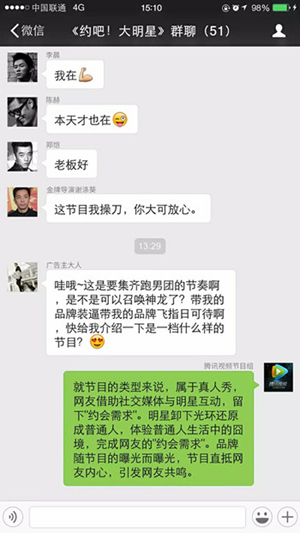 作 為2016年騰訊視頻重磅出擊的綜藝真人秀,《約吧!大明星》內容上的新穎互動,合作形式上的多元化與騰訊視頻全平臺的資源聯動,都將是打造超級營銷事件 的關鍵點。無懈可擊的全明星陣容打造出的將是一檔震撼2016年的綜藝真人秀節目,大明星化身小幫手,傳遞正能量,笑料和溫情充溢節目。整合騰訊視頻、騰 訊網、微信、QQ等多平臺、多渠道。億級推廣資源,為品牌打造專屬營銷,幾乎涵蓋了所有的行業類型,還在等什么?趕快來約。